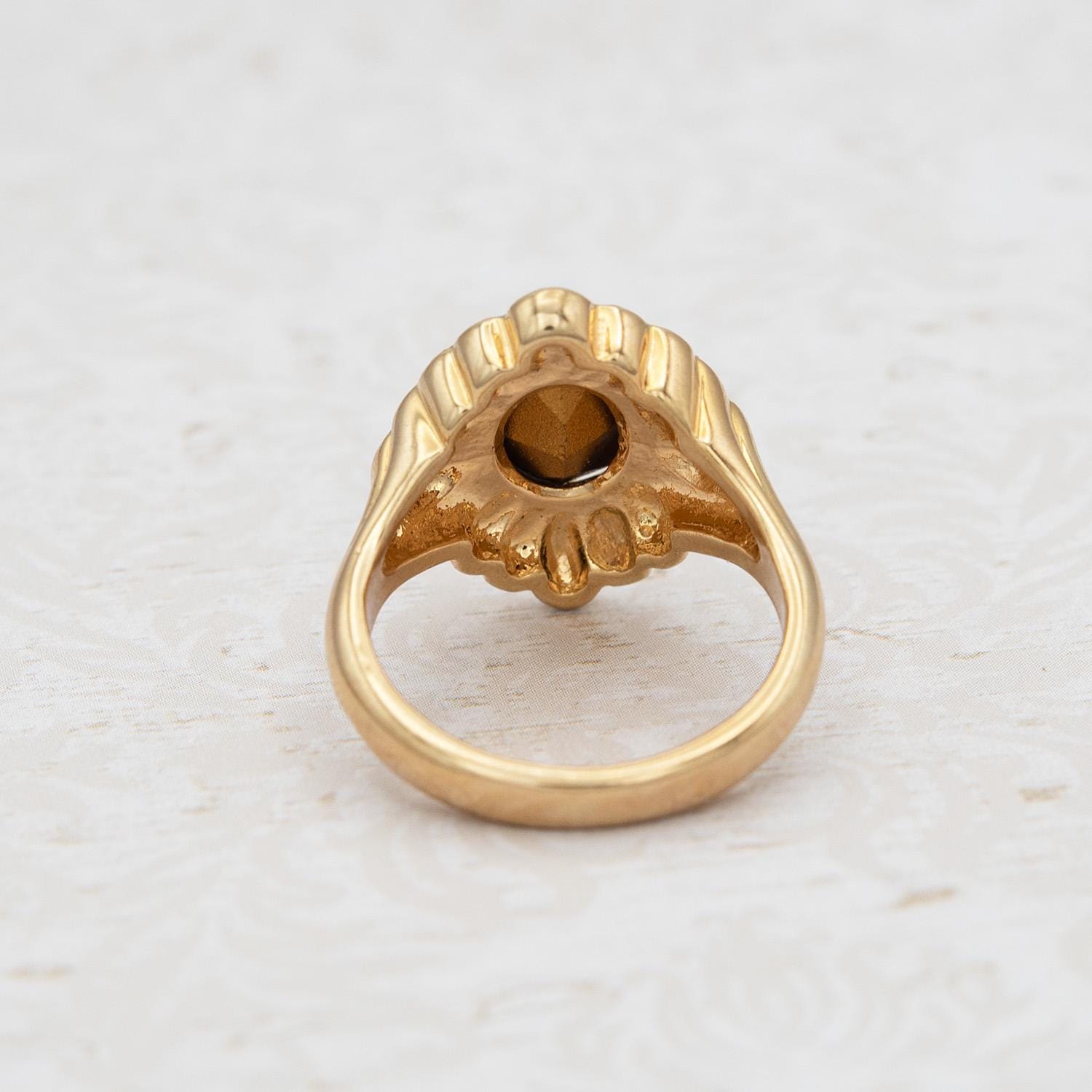18k Gold Electroplated Smoke Topaz Crystal Girls November Birthstone Ring Vintage Victorian Design with Austrian Crystals