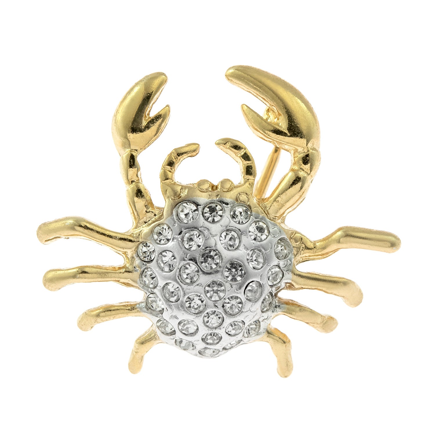 Vintage Crab Brooch Pin Clear Swarovski Crystals 18k Gold Antique Jewelry for Woman
