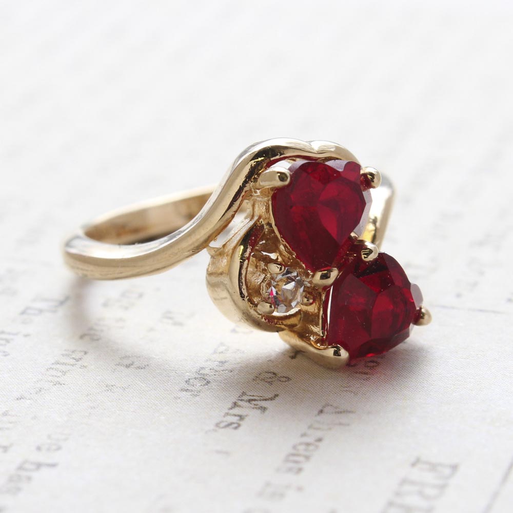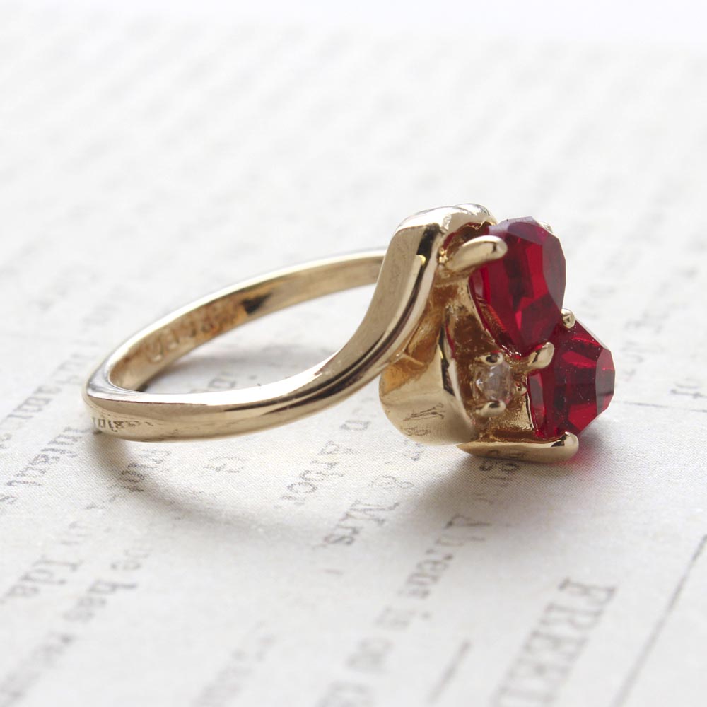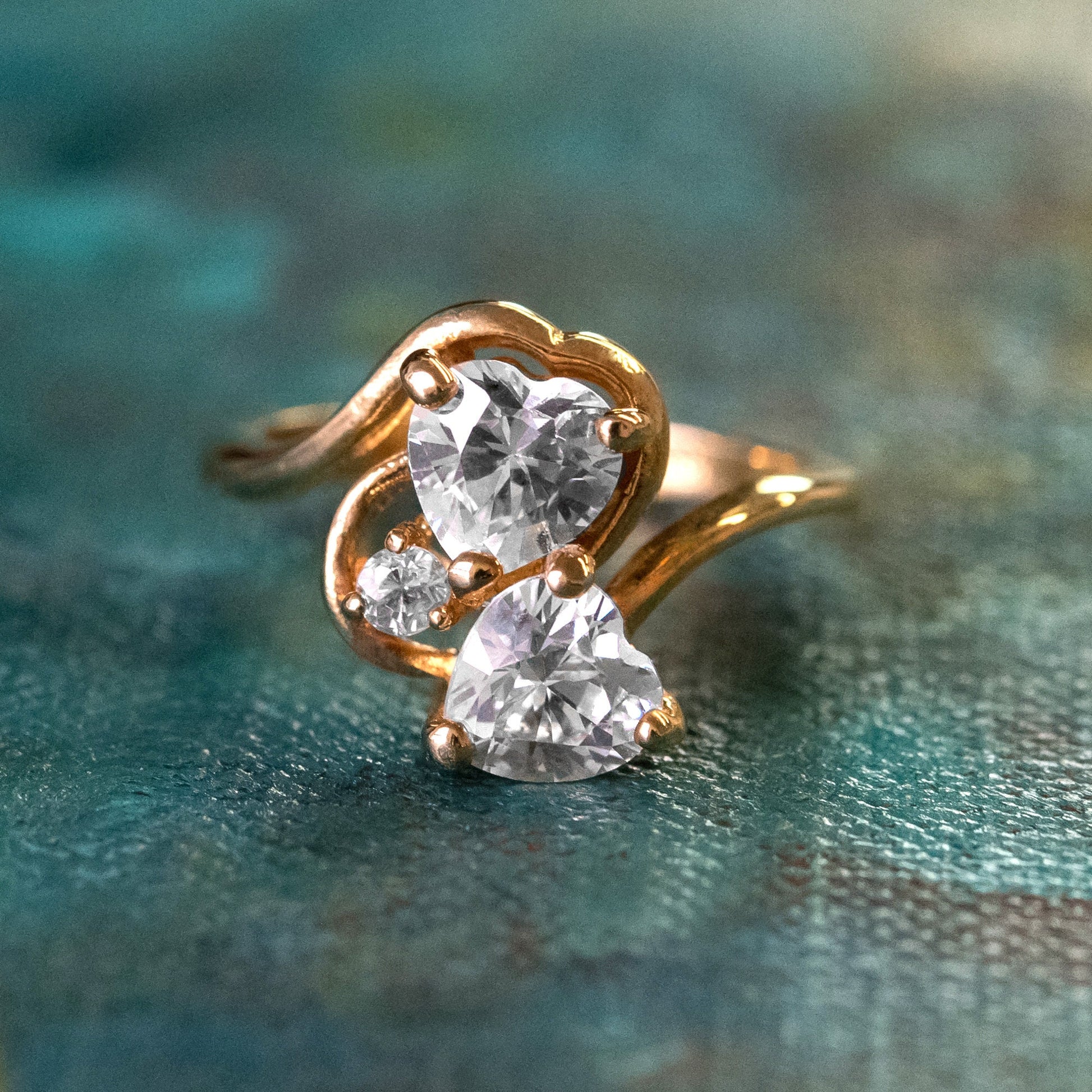 Vintage Cubic Zirconia Double Heart Ring 18k Yellow Gold Electroplated Made in USA