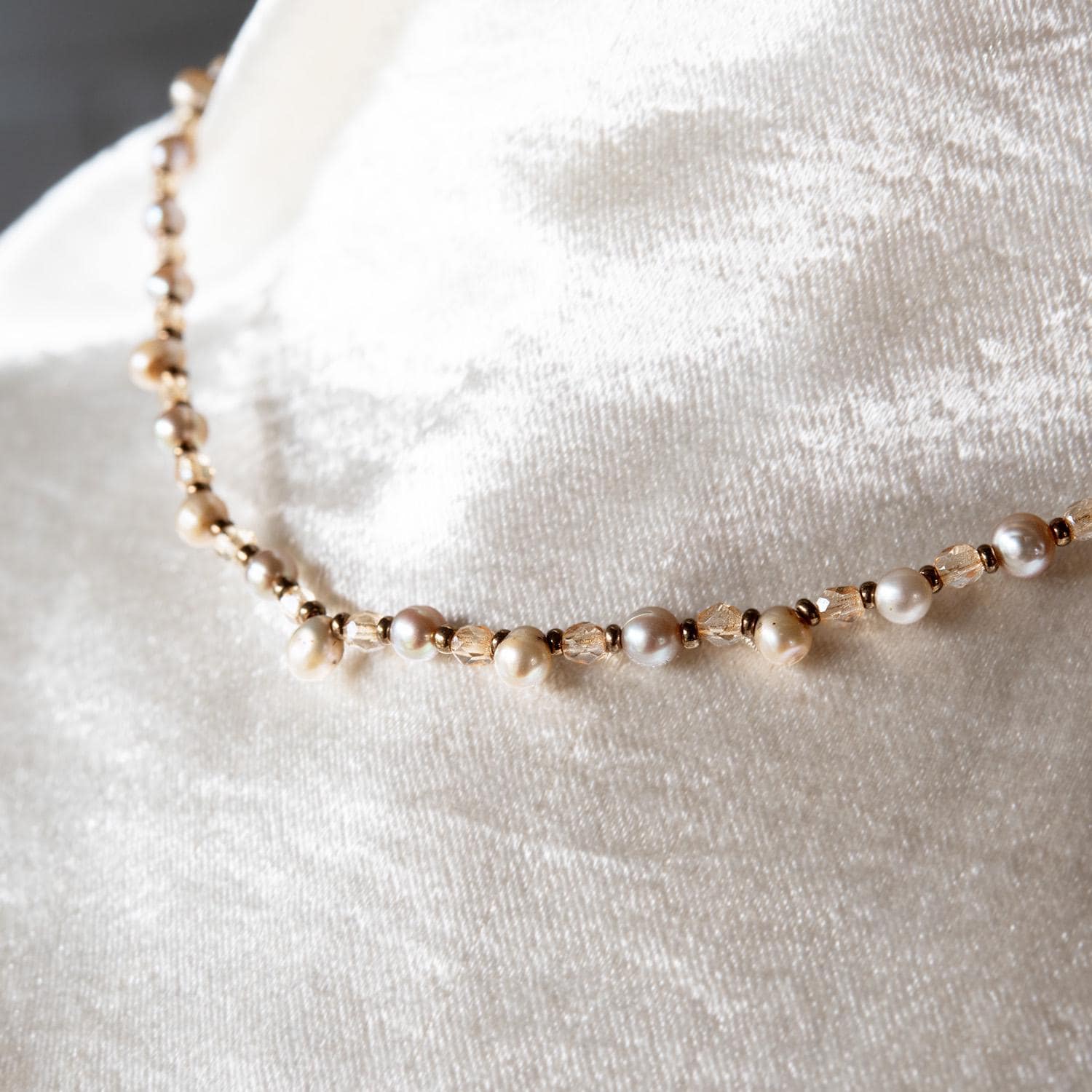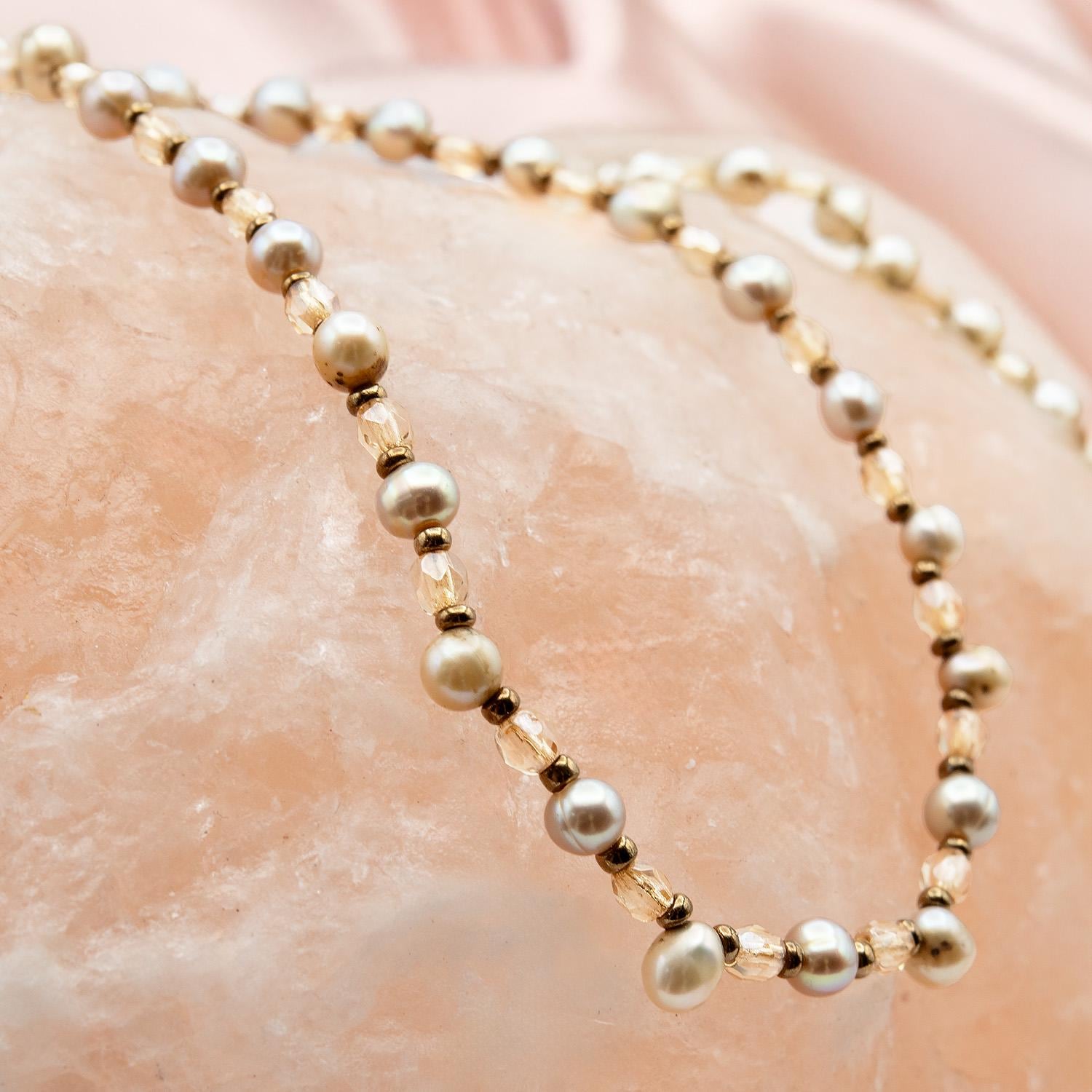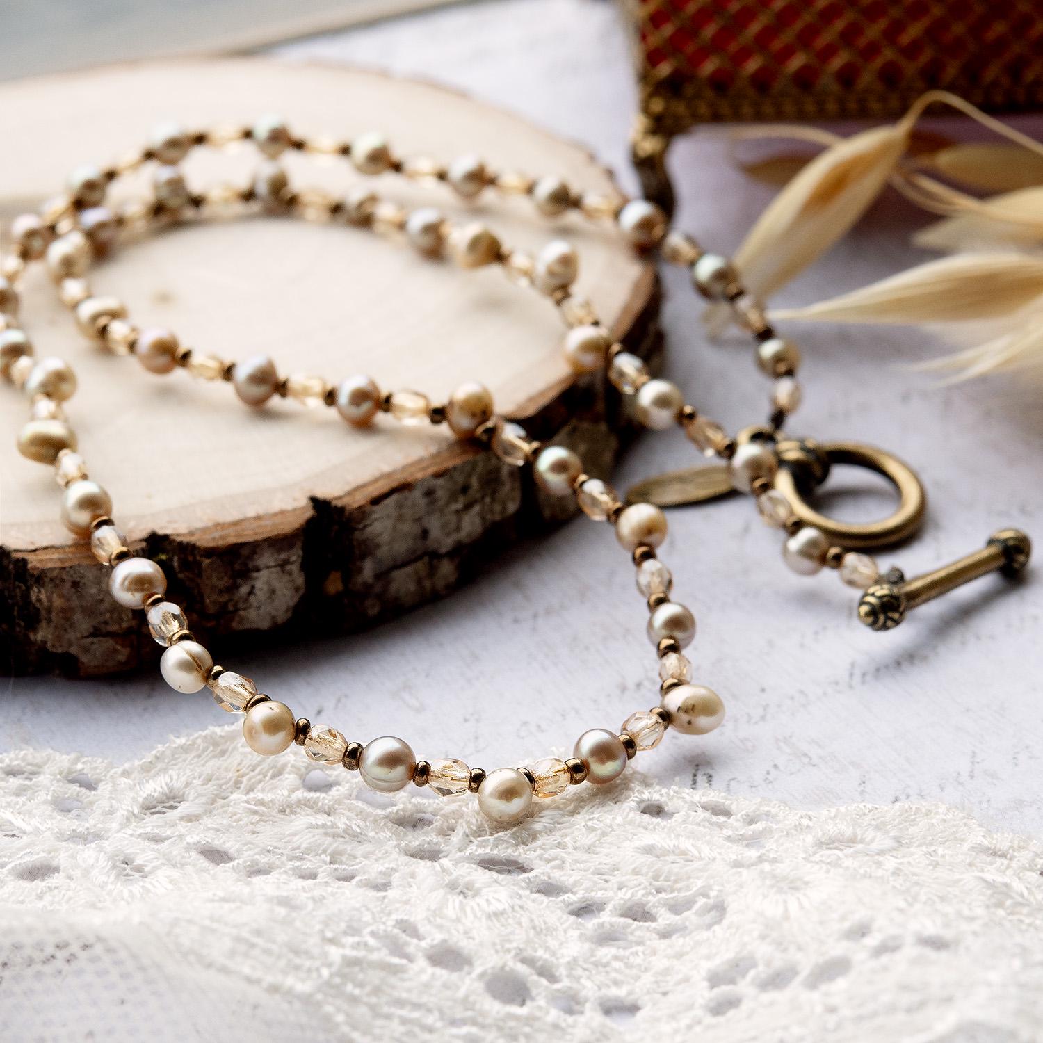 Vintage Oscar De La Renta 16 Inch MINI Genuine Fresh Water Pearl Necklace Faceted Glass Beads Antique Gold Jewelry for Women Girl Antique