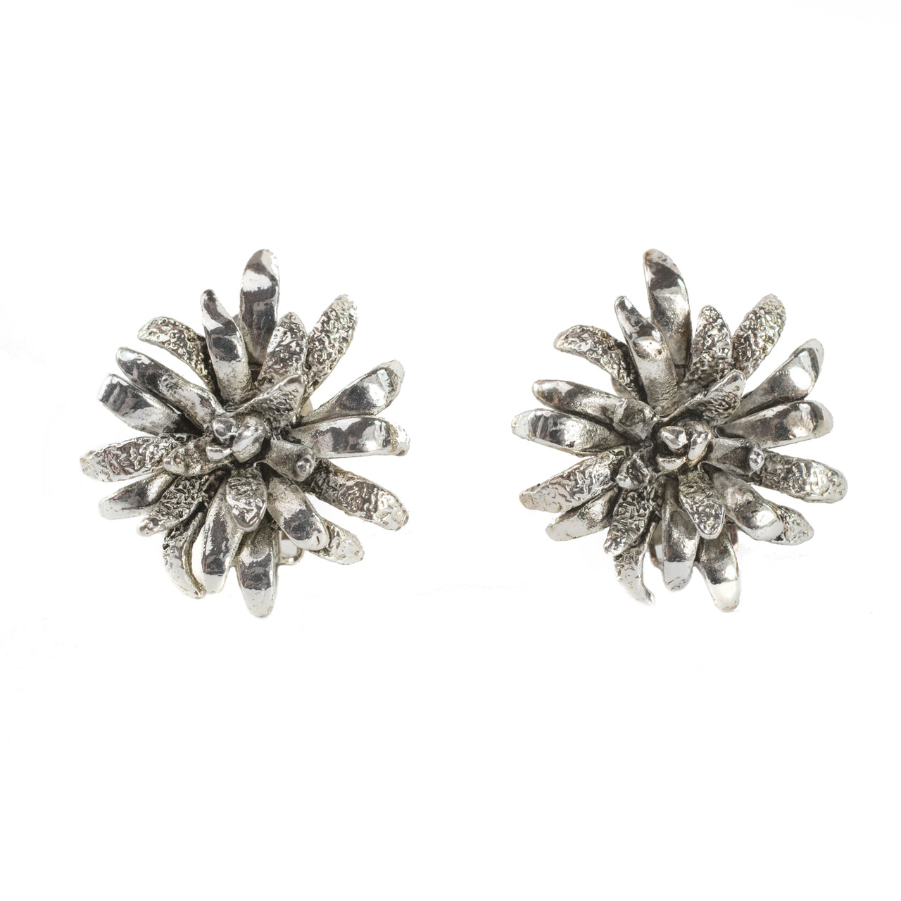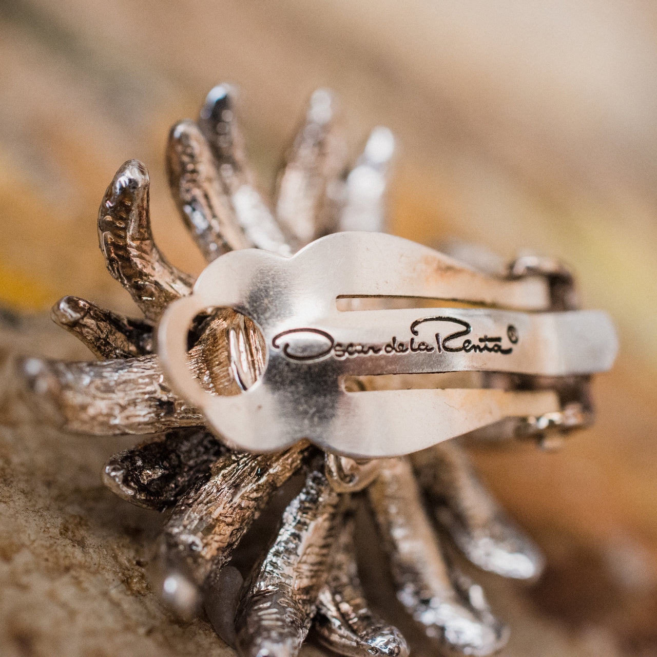 Vintage Earrings Oscar de la Renta Clip Earrings Silver Tone Flower