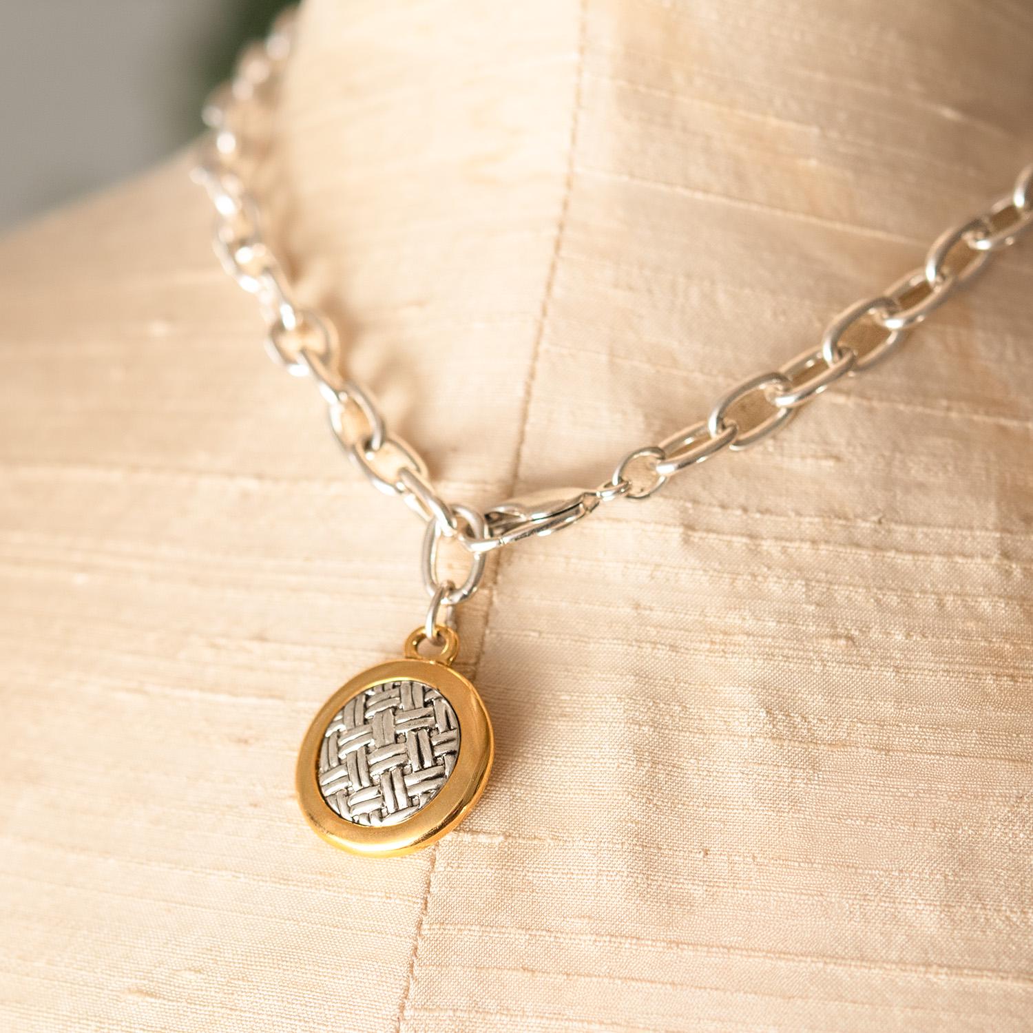 Vintage Oscar De La Renta Gold and Silver 16" Inch Pendant Reversable Necklace Basket Weave Designer Oscar Logo for Women Girls Necklaces