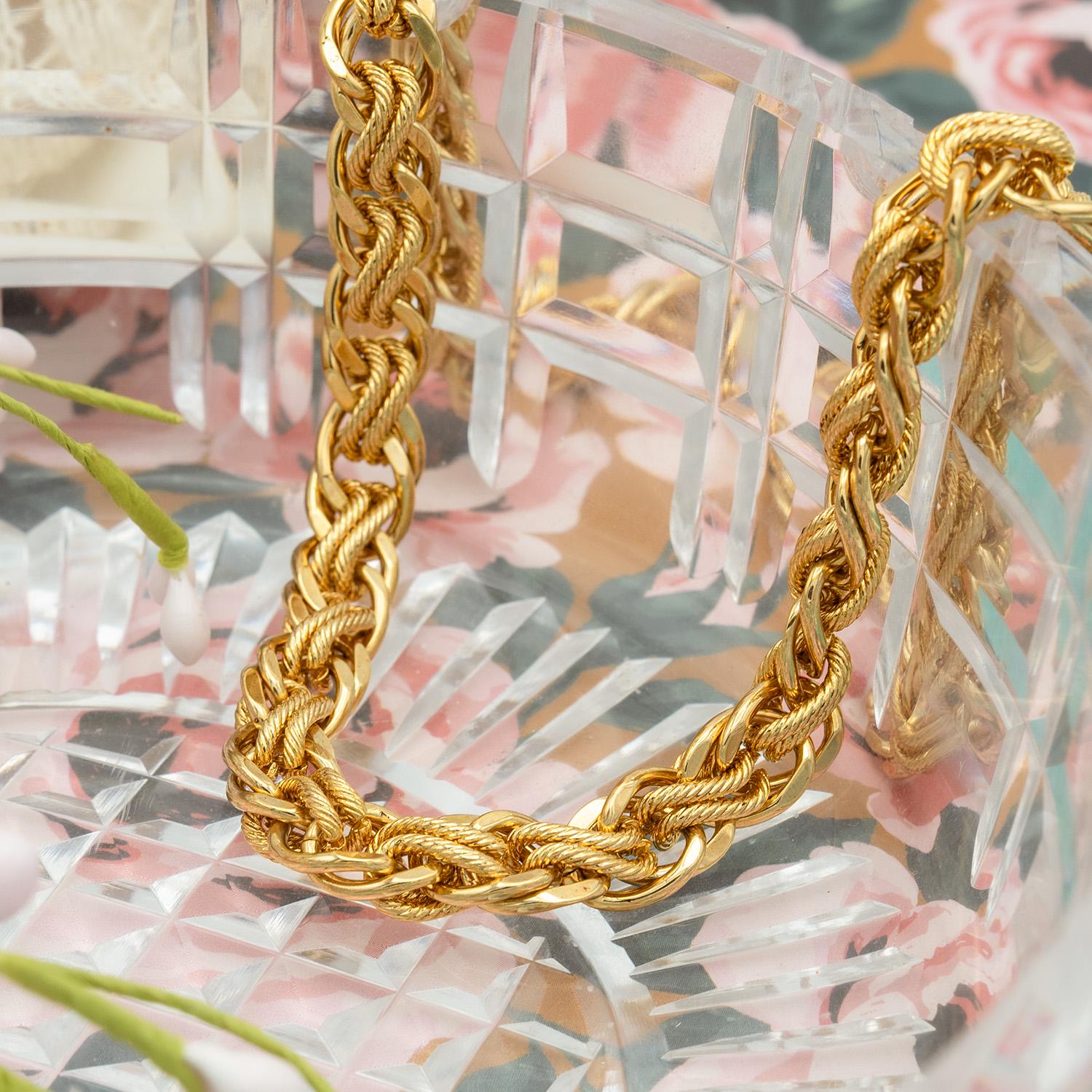 Vintage Oscar de la Renta Necklace Gold Plated Heavy Rope Chain Designer Antique Style Jewelry Bulky for Women Statement Chains Womens