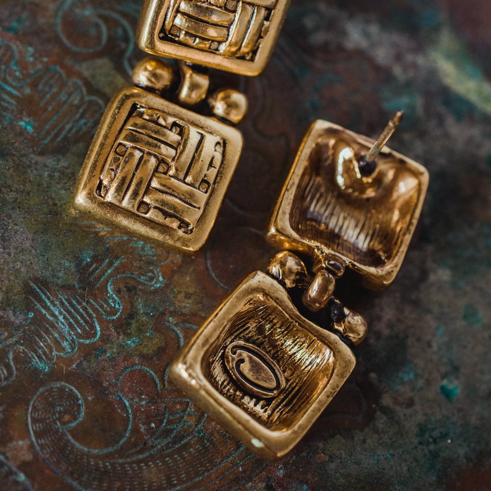 Vintage Oscar de la Renta Gold Dangle Earrings