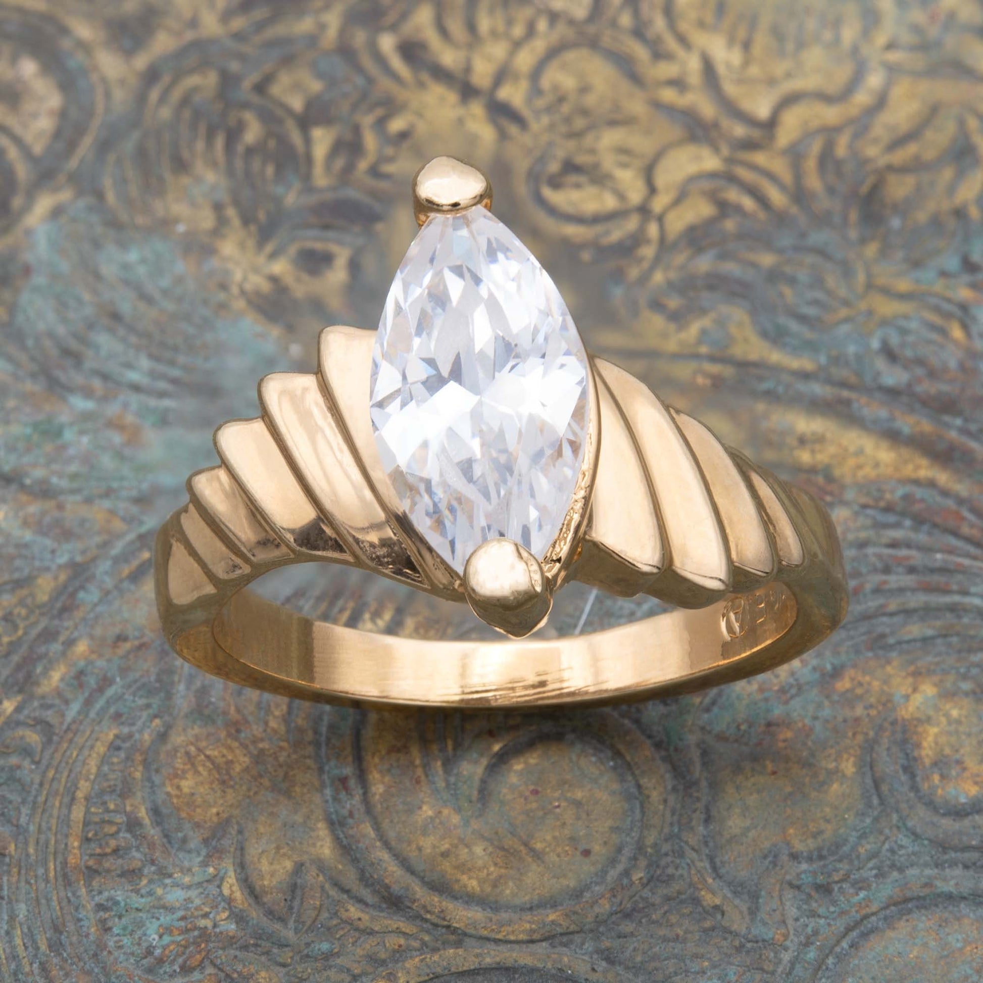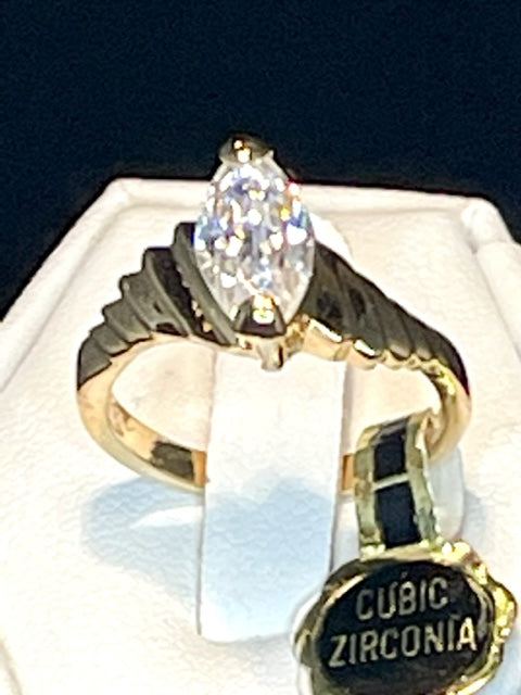 Vintage Ring 1.5 ct. Marquise Cut Cubic Zirconia Solitaire Engagement Style Ring 18KT Gold Antique Womans Jewelry Handmade Rings #R3397 Size: 7