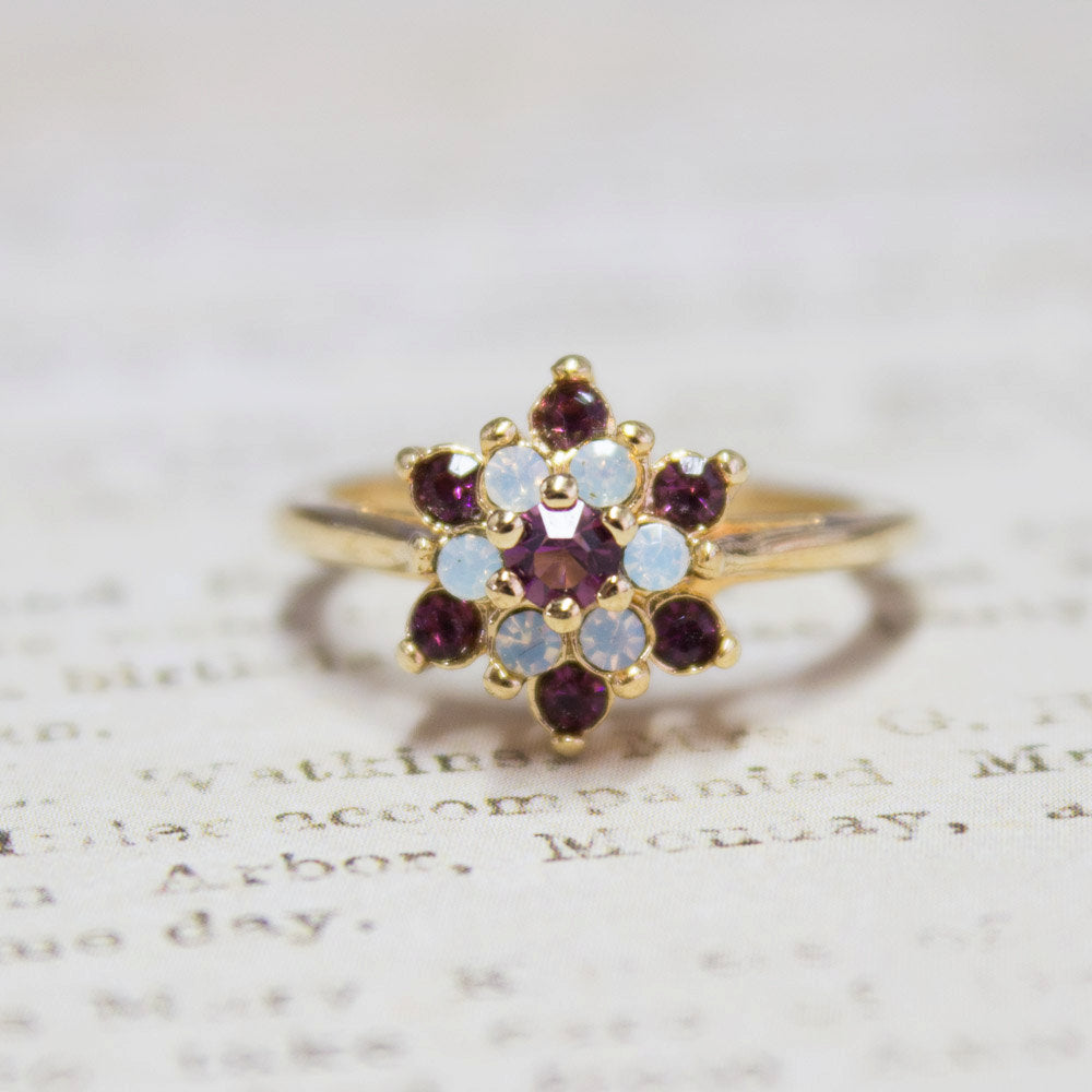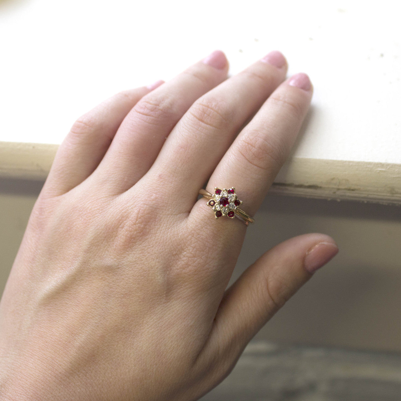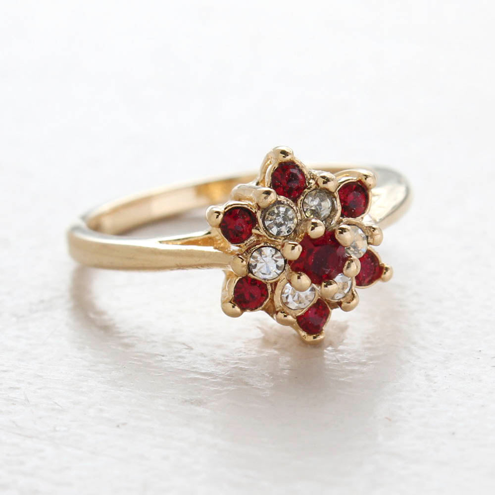 Vintage Ruby and Clear Austrian Crystal Star Ring 18k Yellow Gold Electroplated Made in the USA