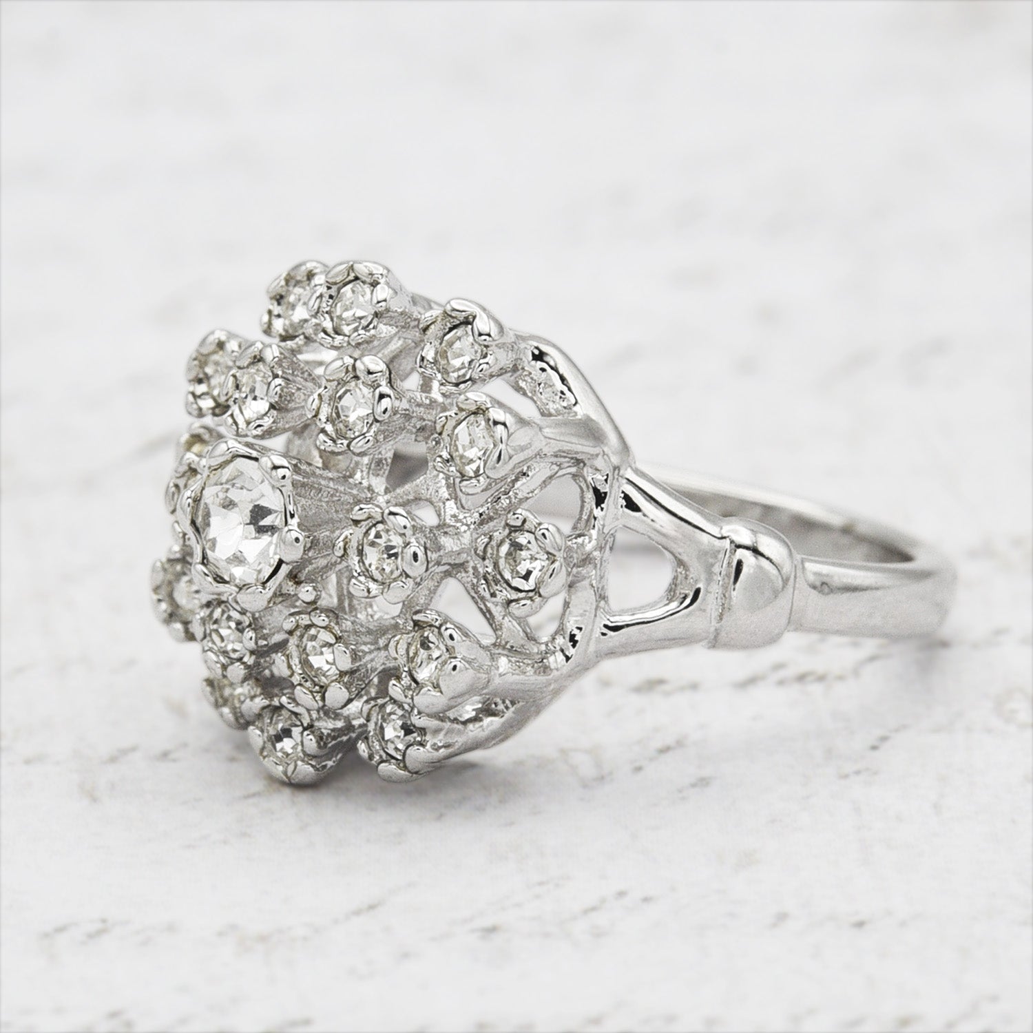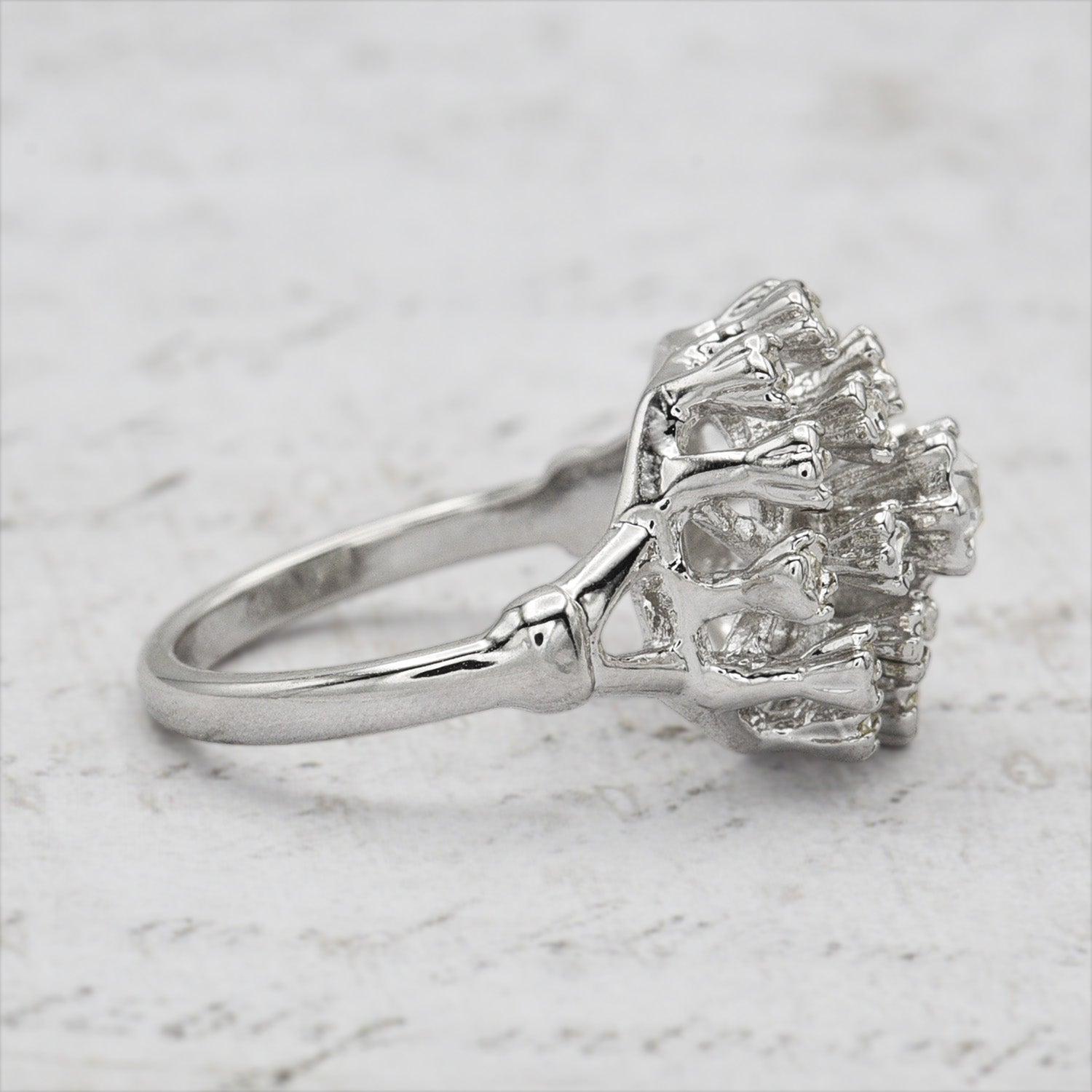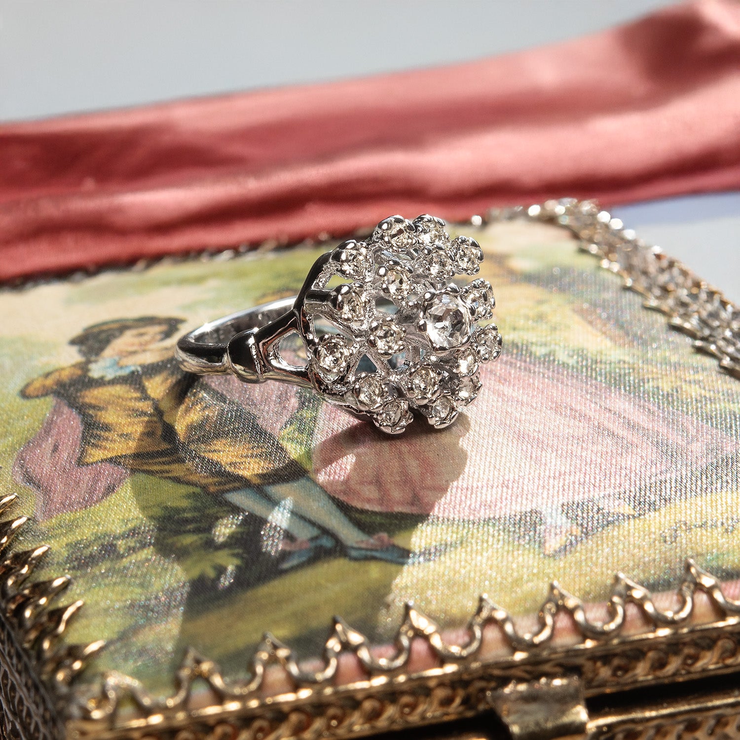 Vintage Pinfire Opal Cluster Antiqued 18k Yellow Gold Electroplated Cocktail Ring Made in USA