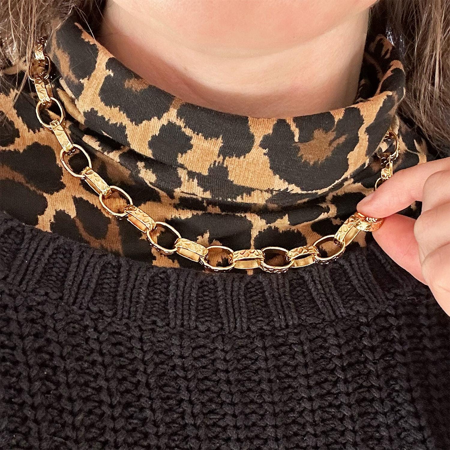 Womens Vintage Oscar De La Renta Stamped Gold 18 Inch Textured Link Bracelet Girls Chunky Necklace Designer Antique Vintage Estate Jewelry
